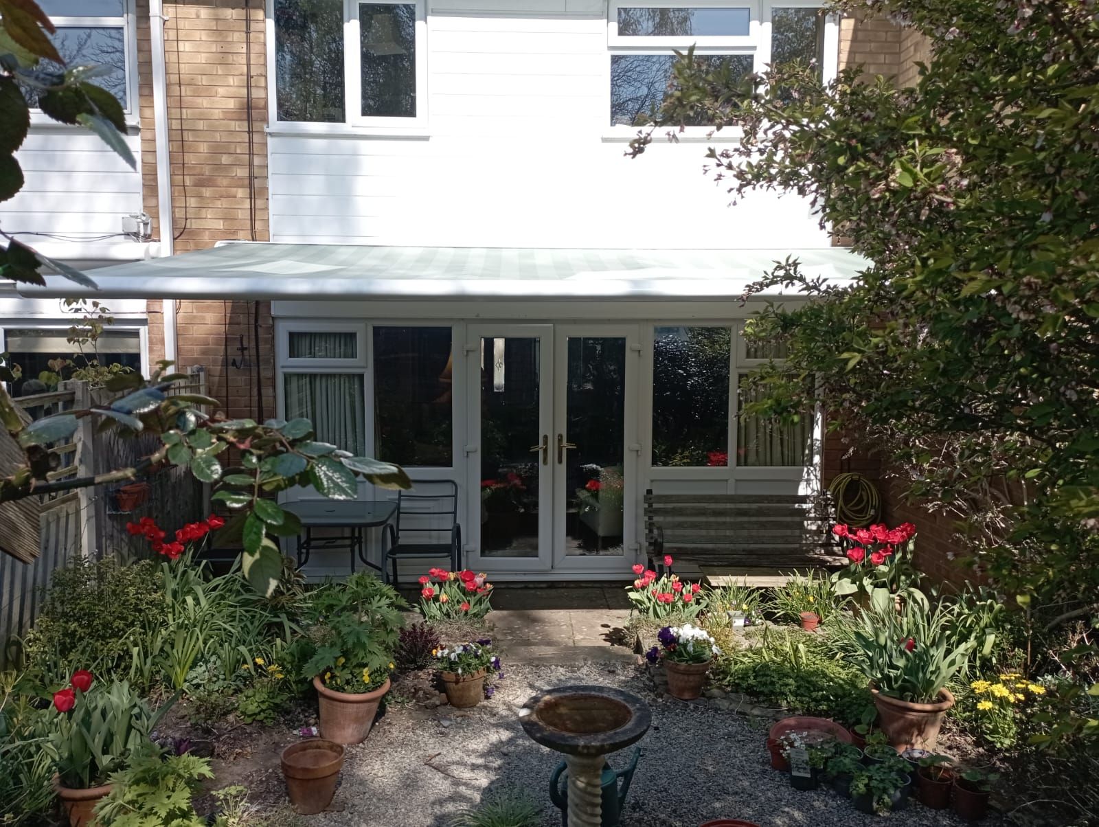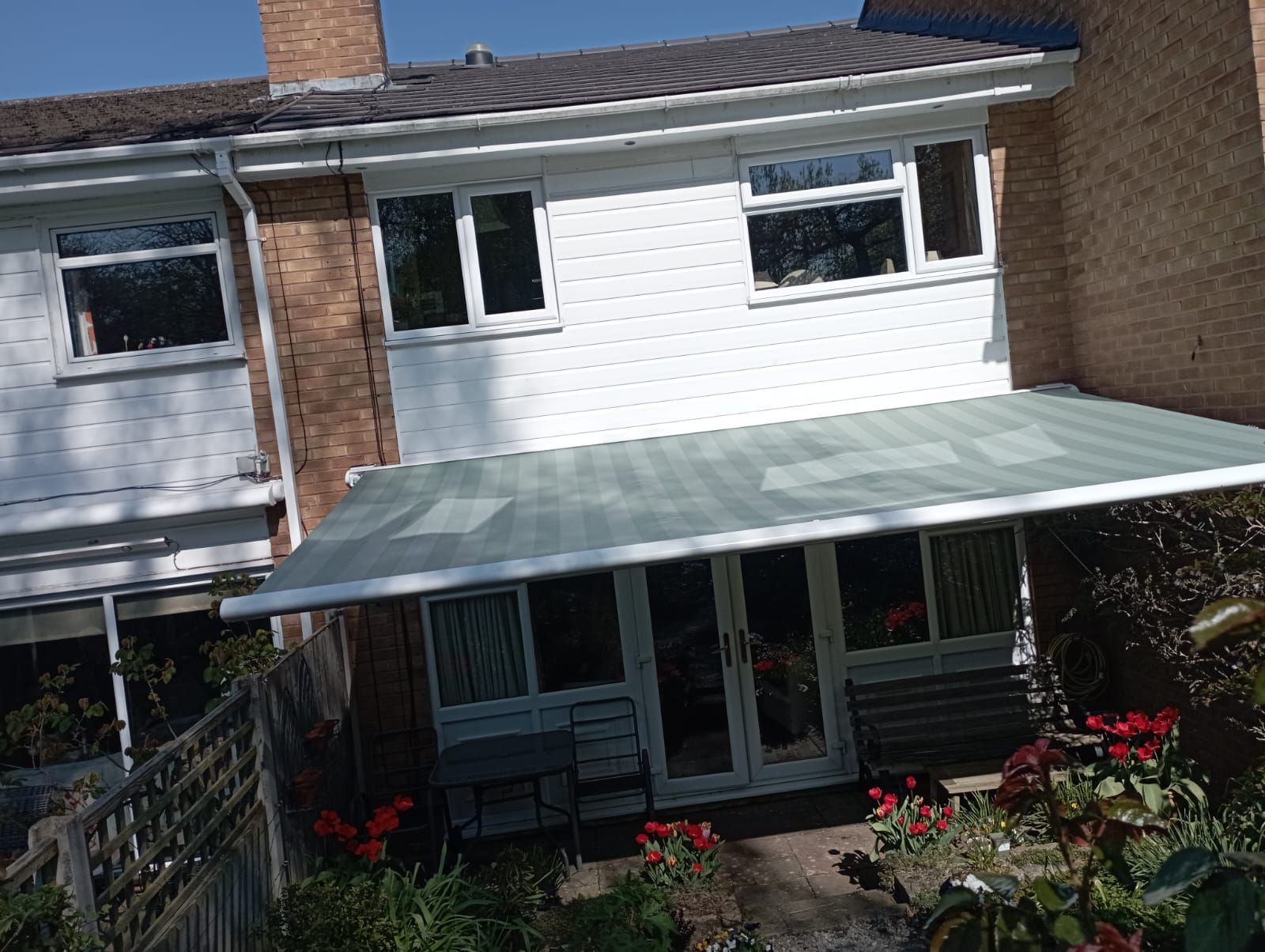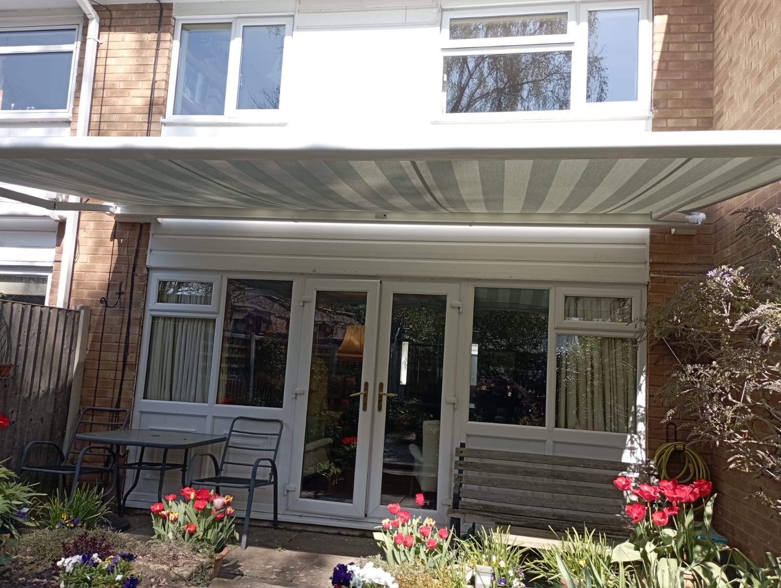 Cooling the interior and providing a shaded area on the patio. This large Cassita II garden awning was specified due to the end fixing mounting and is operated by remote control handset complete with built in wind sensor.
