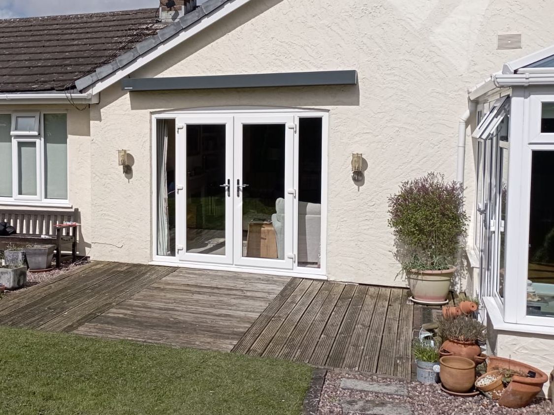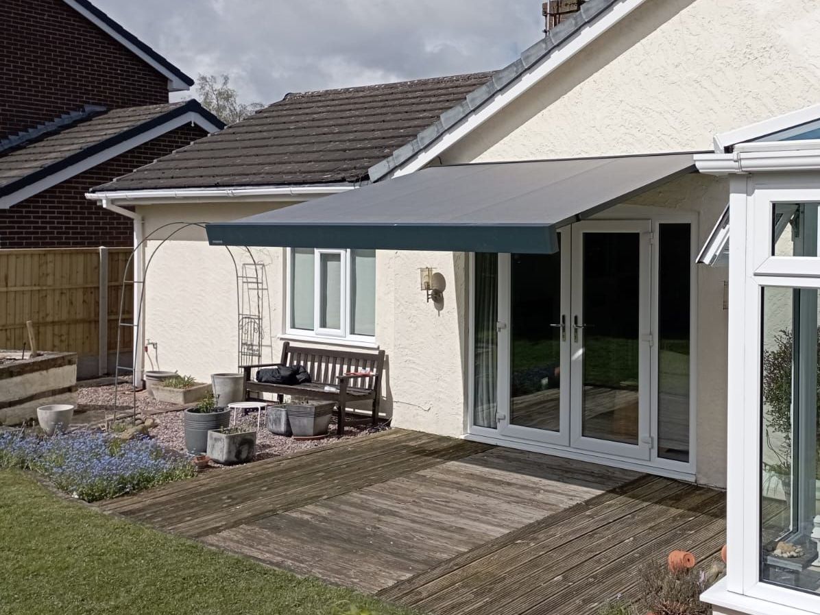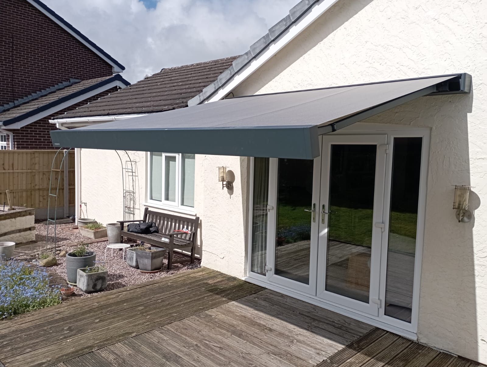 Newly designed profile to provide a contemporary appearance. This 3.0m x 2.5m Smaila Patio awning has textured anthracite finish and is operated by remote control handset.