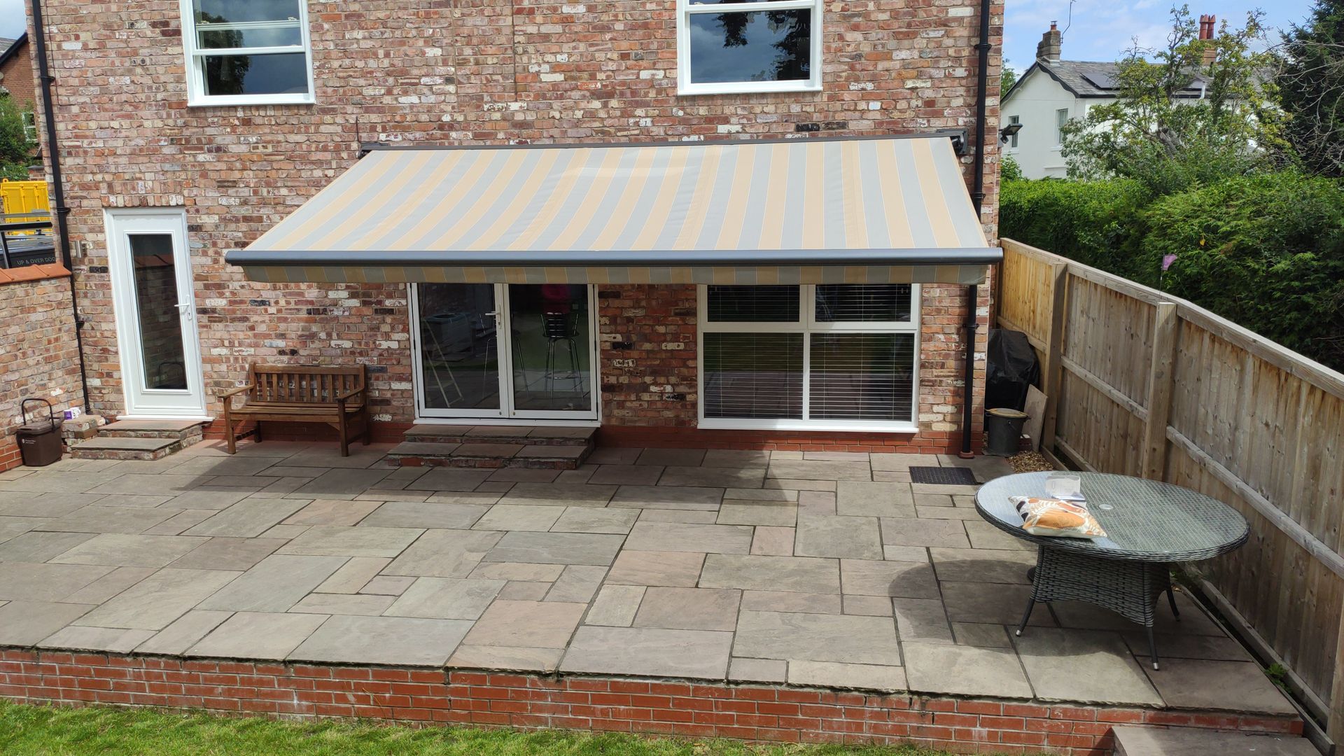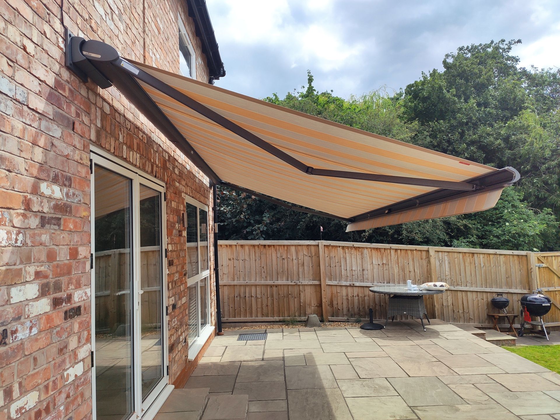 This fabulous Cassita II awning was recently installed in Chester. This customer went for one of our striped fabric patterns with a metallic paint finish for the hardware. This awning comes complete with a hidden wind sensor in the front profile, to retract the awning automatically, should the wind become to strong.