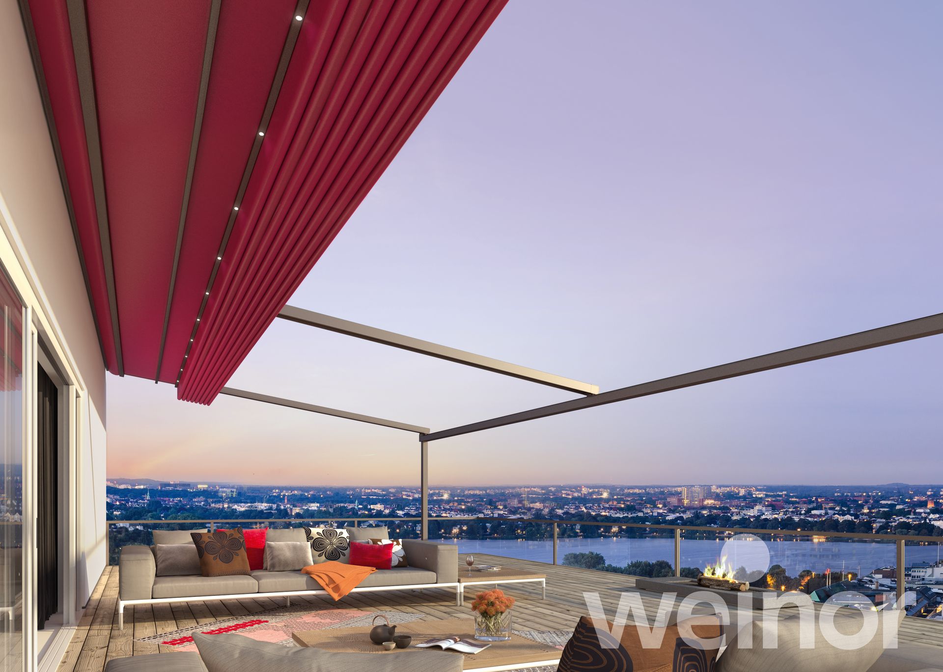 Protection against wind, rain and UV radiation – as well as a great fresh air feeling: the pergola awning weinor PergoTex II is versatile to use and gives you more time outdoors. If you would like to enjoy the sun, just push a button – and the fabric retracts. If the weather takes a turn for the worse, just close the folding awning again. You are protected from the rain in no time.