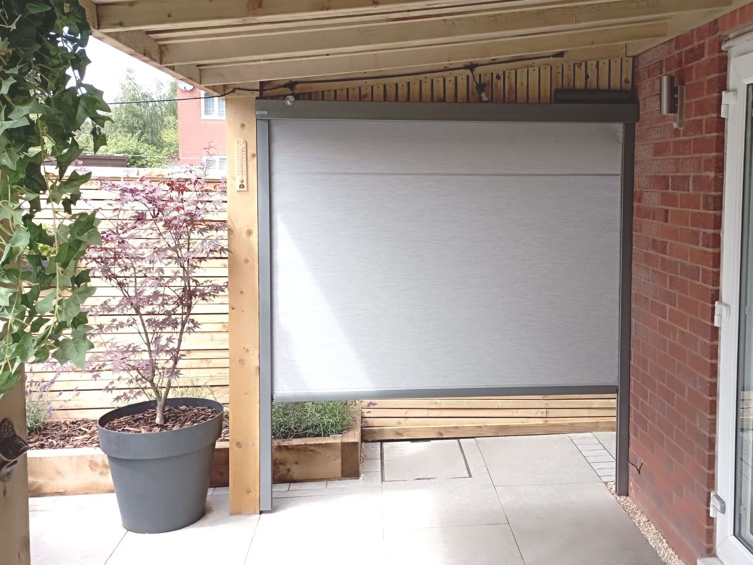 7m wide x 3.7m projection with Sottezza awning mounted underneath to provide shade.