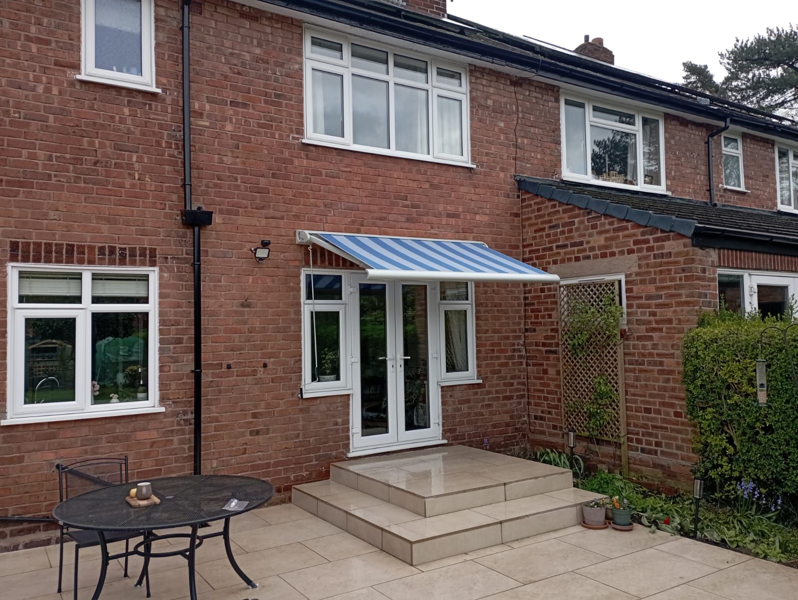 2.7m x 2m projection manual awning on spreader plate brackets.