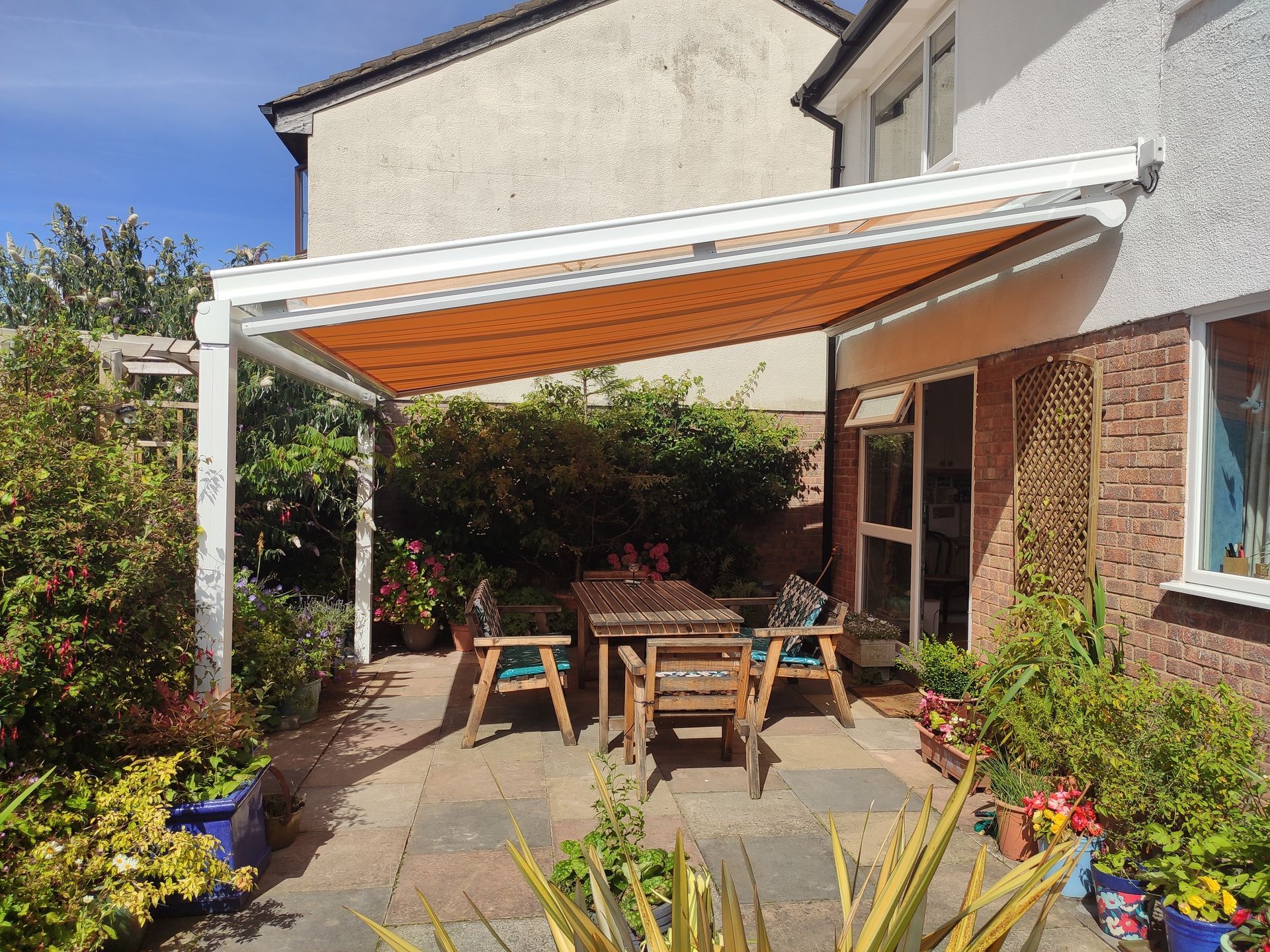 4.5m wide x 4.4m projection with Sottezza awning mounted underneath to provide shade.